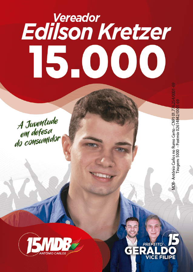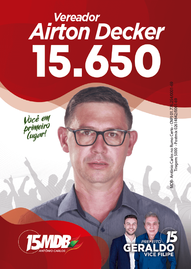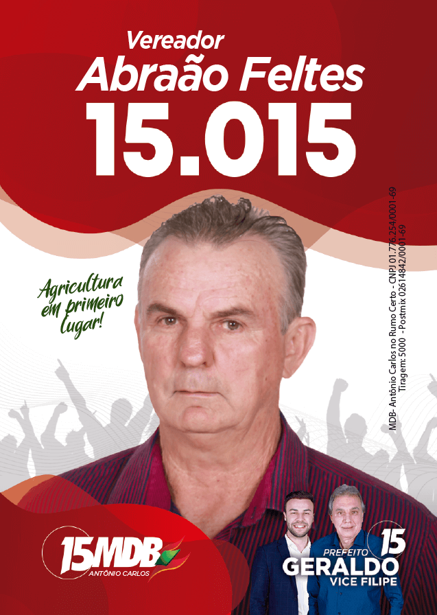 É hora de decidir o futuro de nossa cidade! E para cuidar dessa terra é preciso experiência, amor, compromisso e responsabilidade. Geraldo Pauli dedicou sua vida à Antônio Carlos. Em todas as principais obras e ações do município ele estava lá, planejando, buscando recursos, fazendo acontecer. Um prefeito realizador, responsável e trabalhador, com mais de 30 anos de vida pública. Nesta eleição, ele está acompanhado do vereador mais jovem de Santa Catarina, orgulho para nós, Filipe Schmitz. Juntos eles vão unir experiência com determinação, para que a cidade continue desenvolvendo.