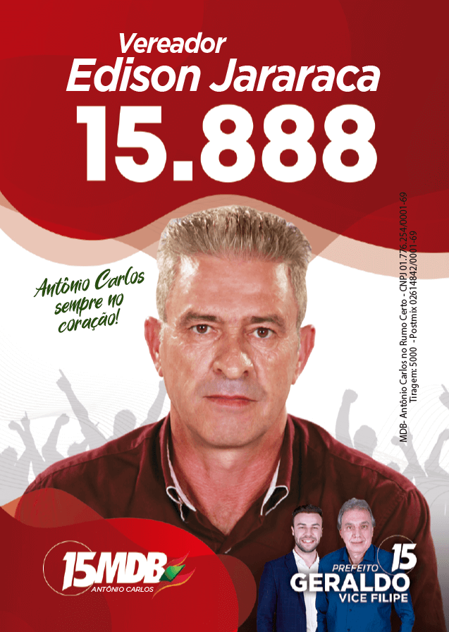 Transparência de gestão, responsabilidade com o dinheiro público, mais saúde e educação de qualidade para nossos munícipes. Apoio à agricultura e ao desenvolvimento sustentável. Estes são os compromissos de quem conhece esta terra, de quem fez da política a sua escolha de vida. De quem ama a nossa cidade. Para que Antônio Carlos continue no Rumo Certo, no próximo dia 15 de novembro, vote 15, vote Geraldo e Filipe!
